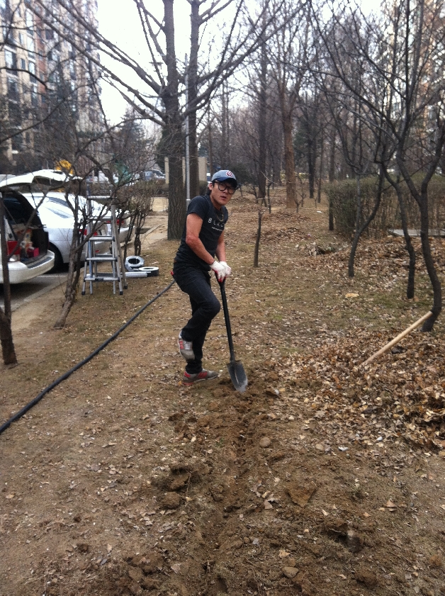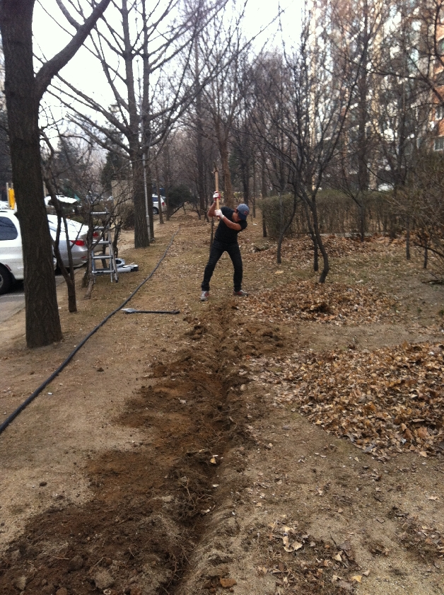 배관 묻는 작업. 땅이 얼어서 잘 파지질 않아서 애 먹었다는...^^