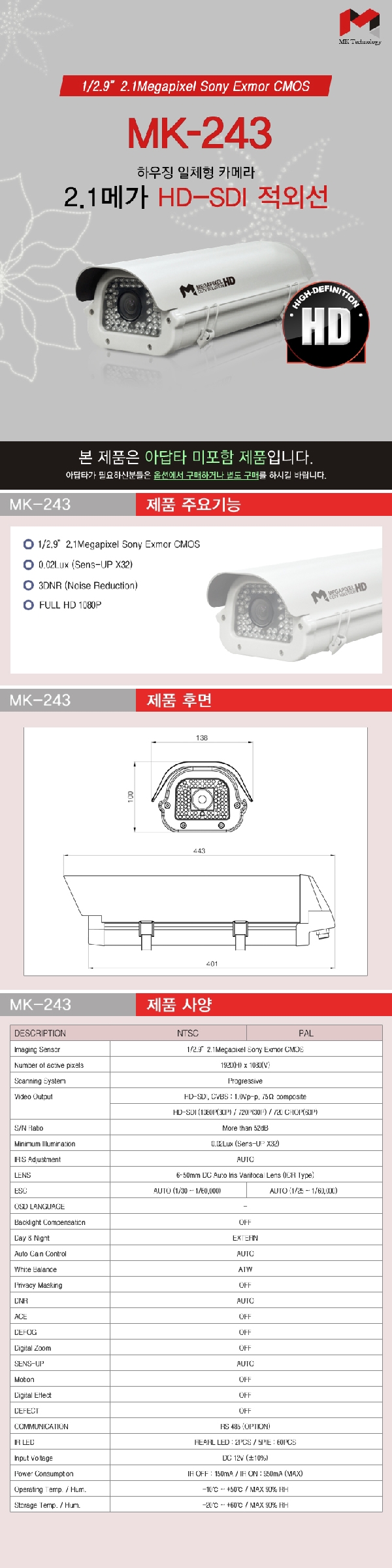 HOME > 제품소개 > HD급제품 > HD급 카메라