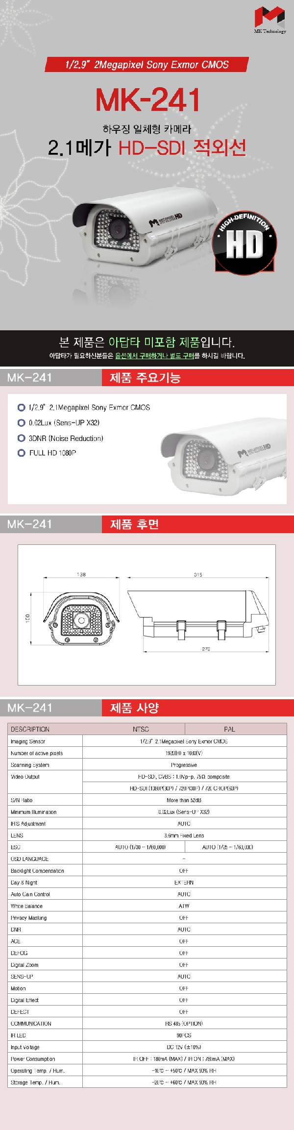 HOME > 제품소개 > HD급제품 > HD급 카메라