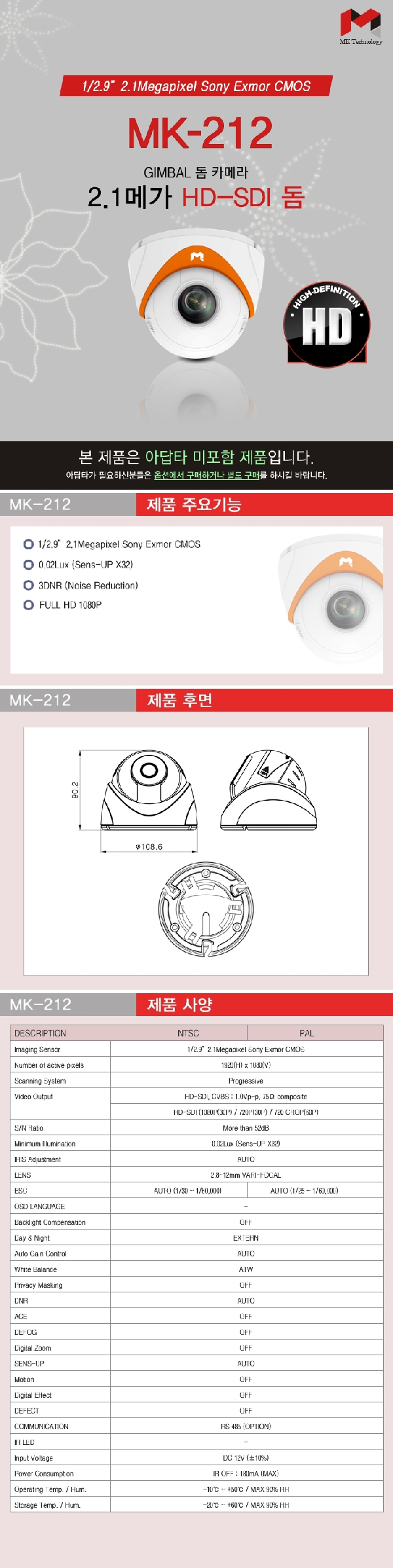 HOME > 제품소개 > HD급제품 > HD급 카메라
